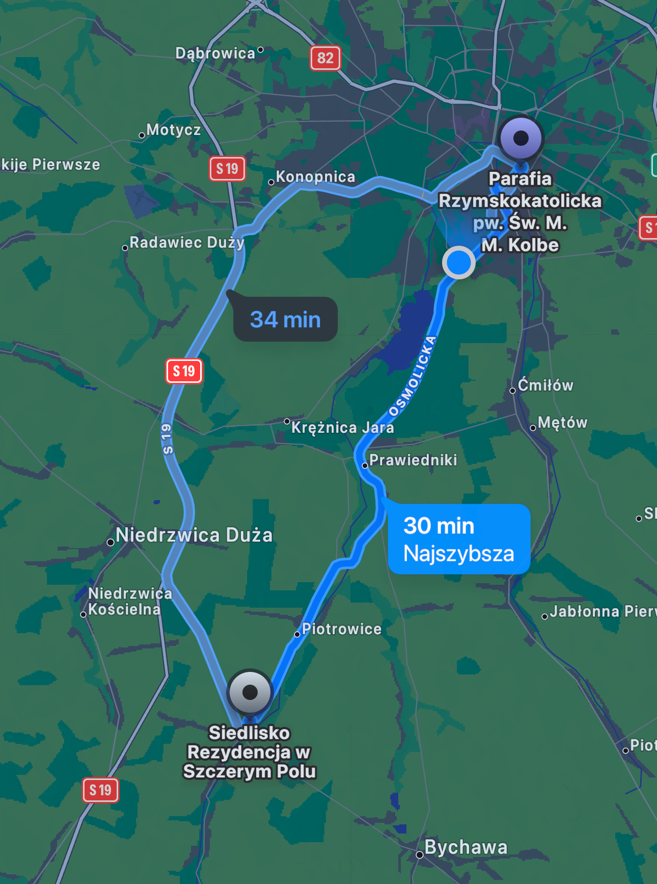 Poniżej znajdziecie pinezki i linki z lokalizacjami i przycisk, który od razu przekieruje was do trasy z kościoła do sali weselnej. Klikając pinezkę przekieruje was do adresu danego obiektu.